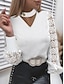 Mulheres Camisa Social Blusa Tops de renda Renda Tecido à moda Básico Clássico Manga Longa Decote V Tops regulares Diário Feriado Para Noite Branco Verão Primavera