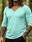 Homens Camiseta Camisetas T-shirt Camisa de manga longa Manga Longa Decote V Verão Primavera Tecido Moda Designer Básico Clássico Férias Rua Para Noite Preto Roxo Azul Céu Top Tee para Homens