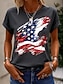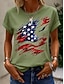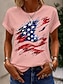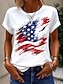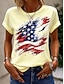 Dia da Independência Americana Mulheres Camiseta Imprimir Gráfico Bandeira à moda Clássico Casual Manga Curta Gola Redonda Tops regulares Diário Branco Amarelo Rosa Verde Cinzento Verão Primavera