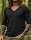 Homens Camiseta T-shirt Manga Curta Decote V Verão Tecido Moda Designer Básico Férias Rua Para Noite Preto Branco cáqui Top Tee para Homens