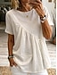 Mulheres Camisetas com bordado de olho Frufru Com Corte Tira de Prender Côr Sólida Elegante Vintage à moda Manga Curta Concha Gola Redonda Tops regulares Diário Para Noite Branco Rosa Vinho Azul Claro