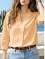 Mulheres Camisas de algodão e linho Botões Côr Sólida à moda Básico Casual Manga Longa Colarinho de Camisa Tops regulares Diário Trabalho Branco Amarelo Verão