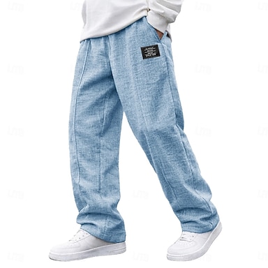 Homens Calças de linho Calças Calça verão Calça casual Com Cordão Cintura elástica Perna reta Tecido Conforto Respirável Comprimento total Casual Diário Ao ar livre Moda Estilo Clássico Preto Branco