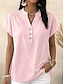 Mulheres Blusa Linho de algodão sintético Botões Côr Sólida Diário à moda Casual Manga Curta Decote V Tops regulares Diário Rosa Verão Primavera
