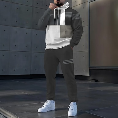 Homens Geométrica Bloco de cor 2pcs Conjuntos de moletom 3D Moletom Moletom com capuz Manga Longa Calças compridas Com Capuz Casual Diário Roupa Esportiva Impressão 3D Com Capuz Primavera Outono