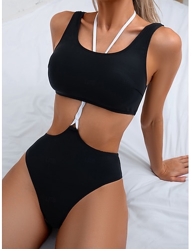 Maiô Feminino 1 Peça Monokini Controle de Barriga Cintura Alta Slim Costa Nua Vacacional Praia Cor Sólida Decote Redondo Sem Mangas
