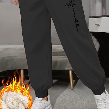 Mulheres Calças Esportivas Férias Vintage Estilo Étnico Comprimento total Cintura Alta Coração Com Cordão Bolsos Tosão Térmico / Quente A Prova de Vento Confortável Elasticidade Alta Férias Formal Rua