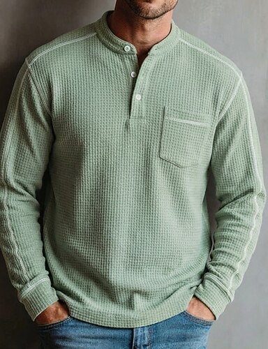 Homens Camiseta Waffle Camiseta Camisa Waffle Henley Manga Longa Henley Primavera Todas as Estações Côr Sólida Casual Bolsos Casual Casa Ao ar livre Azul Vermelho Azul Marinha Top Tee para Homens
