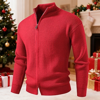 Homens Sueter Cardigan Suéter Cortado Suéter com zíper Suéter de malha Estriado Tricotar Tops regulares Tecido Colarinho Chinês Moda Clássico Férias Roupa Diária Roupa Inverno Vermelho S M L