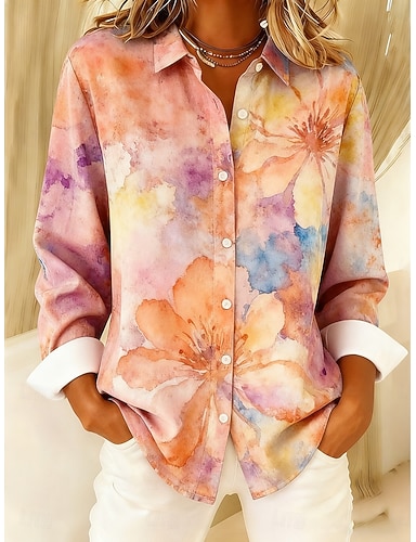 Mulheres Camisa Social Botões Imprimir Floral Gráfico à moda Casual Manga Longa Colarinho de Camisa Tops regulares Diário Rosa Primavera Outono