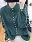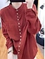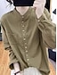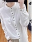 Mulheres Camisas de algodão e linho Linho de algodão sintético Botões Côr Sólida Diário à moda Básico Manga Longa Gola Alta Tops regulares Diário Branco Vermelho Verde Cáqui Verão Primavera Outono
