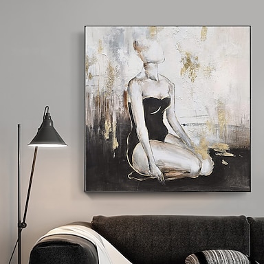 Pintura a óleo pintada à mão arte de parede abstrata waman pintura em tela decoração para casa decoração moldura esticada pronta para pendurar