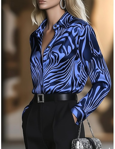 Mulheres Camisa Social Gráfico Geométrica Vintage à moda Moderno Manga Longa Colarinho de Camisa Tops regulares Diário Feriado Azul Rosa avermelhado Rosa Cinza Claro Verão Primavera