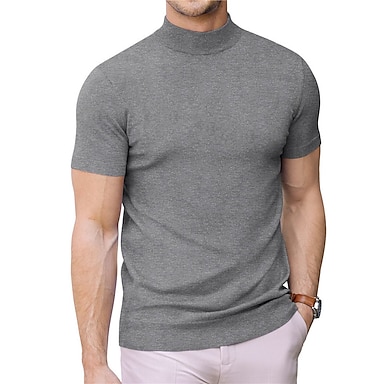 Homens Camiseta Camisa de gola alta Manga Curta Gola Alta Verão Primavera Tecido Moda Casual Confortável Macia Casa Casual Final de semana Preto Branco Cinzento Top Tee para Homens