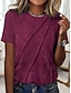 Mulheres Blusa Côr Sólida à moda Clássico Casual Manga Curta Gola Redonda Tops regulares Diário Roxo Cáqui Verão Primavera