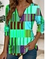Mulheres Camiseta Imprimir Gráfico Geometria Vintage à moda Clássico Manga Curta Decote V Tops regulares Casual Diário Para Noite Azul Roxo Verde Verão Primavera