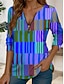 Mulheres Camiseta Zíper Imprimir Gráfico Geométrica Vintage à moda Casual Manga Longa Gola Redonda Tops regulares Diário Azul Roxo Laranja Verde Verão Primavera