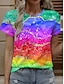 Mulheres Camiseta Imprimir Âmbar Gráfico Abstrato à moda Clássico Casual Manga Curta Gola Redonda Decote Redondo Tops regulares Diário Arco-íris Verão Primavera