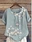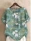 Mulheres Camiseta Imprimir Floral Gráfico Plantas Vintage à moda Clássico Manga Curta Decote V Tops regulares Casual Diário Final de semana Preto Branco Verde Verão Primavera