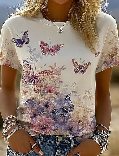 Mulheres Camiseta Imprimir Gráfico Animal Vintage à moda Clássico Manga Curta Gola Redonda Decote Redondo Tops regulares Diário Final de semana Verde e Azul Branco Azul empoeirado Verão Primavera
