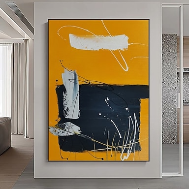 Pintura a óleo pintada à mão arte da parede abstrato preto amarelo e branco decoração de casa decoração lona enrolada sem moldura não esticada