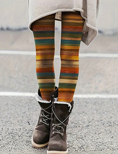 Mulheres Calças Leggings Leggings aconchegantes Roupa de rua Casual Comprimento total Cintura Alta Listra Cintura elástica Imprimir Respirabilidade Confortável Com Stretch Férias Rua Roupa Diária