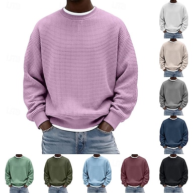 Homens Moletom Moletom Waffle Moletom com capuz Vermelho Vinho Preto Branco Verde Claro Azul Marinha Gola Redonda Tecido Textura Casual Diário Desportos e Ar livre Poliéster Roupa de rua Legal Roupa