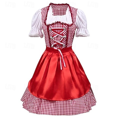 Oktoberfest Vestidos Dirndl Trachtenkleader Oktoberfest / Cerveja Bávaro Traje Tradicional prados Mulheres Pano de Estilo Tradicional Blusa Vestido Avental