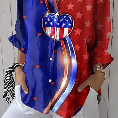 Dia da Independência Vestido Midi Patriótico Feminino Vestido Casual Festa Casual Boho Data Ajuste Regular Gráfica Abstrata Manga Longa Decote em V Vermelho Verão Primavera
