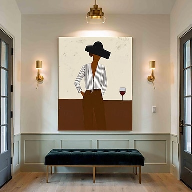 Arte abstrata de parede em tela com tema de cowboy do oeste americano, arte original de cowboy, retrato elegante de homem e mulher em tela, pintura sem rosto, decoração para casa, arte wabi-sabi.