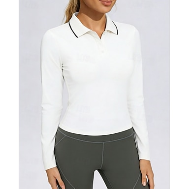Mulheres Cor Sólida Camiseta de tênis Top esportivo Camisas polo de tênis Manga Longa Costas Nadador Secagem Rápida Respirável Voleibal Tênis Badminton Colarinho polo Blusas Preto Branco Azul Céu