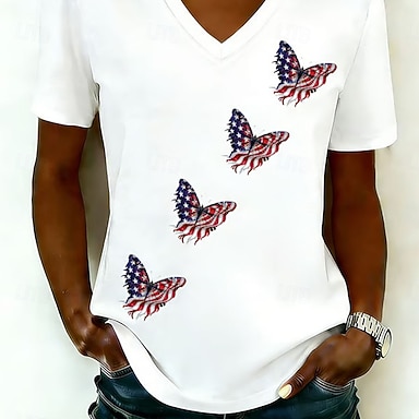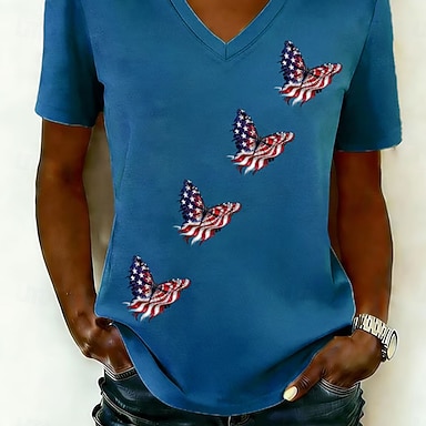 Dia da Independência Americana Mulheres Camiseta Imprimir Gráfico Letra Bandeira americana à moda Clássico Casual Manga Curta Gola Redonda Tops regulares Diário Azul Preto Branco Verde Verão Primavera