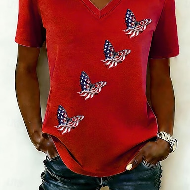 Dia da Independência T-shirt patriótica feminina gráfico bandeira vintage estilosa clássica manga curta crew neck round neck regular tops diário final de semana impressão branca vermelha azul claro