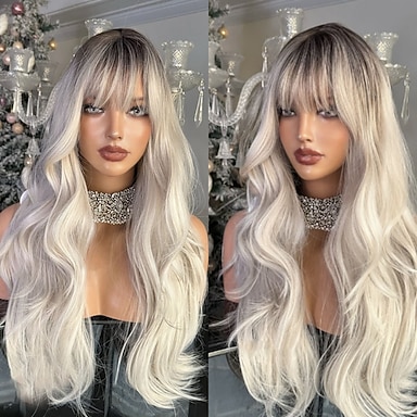 perucas haircube na moda ombre cinza branco loiro perucas onduladas longas ondas naturais perucas com franja para mulheres brancas perucas barbiecore