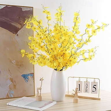 Conjunto de 3 peças com 5 garfos de orquídea artificial Oncidium dançante, com toque realista, orquídea borboleta artificial estilo europeu, buquê de flores artificiais para decoração de mesa em casa,