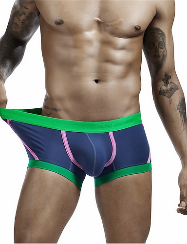 Homens 1 pc Cueca Boxer Boxers Patchwork Fibra Sintética Respirável Macio Confortável Letra Cintura Média Preto Branco