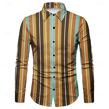 Retro Vintage Anos 70 Camisa Camisa Aloha Hippie Listrado Étnico Fantasia Homens Baile de Máscaras Festa Roupa Diária Parada do Orgulho Adulto Camisa
