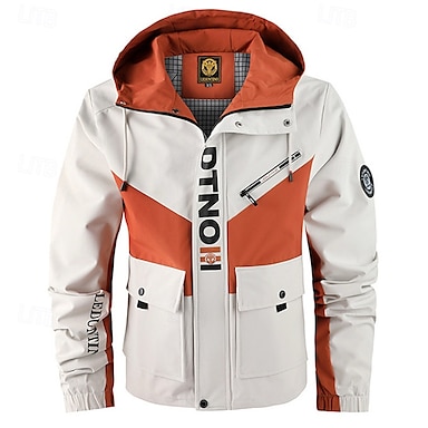 Homens Casaco exterior Jaqueta casual Férias Diário A Prova de Vento Manter Quente Bolsos Outono Inverno Bloco de cor Letra Moda Clássico Com Capuz Padrão Branco Cinzento Escuro Casaco
