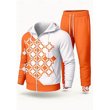Homens Moletom Agasalho de 2 peças Conjuntos de moletom Com Cordão Zip Up Geométrica Conjuntos Outono Inverno Azul Laranja Vocação Exterior Viagem Leve Da Moda Manga Longa Esporte Roupas Esportivas