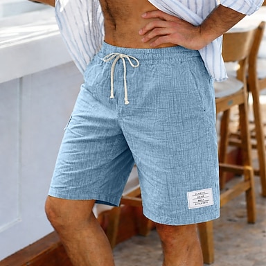 Homens Calção Shorts de verão Shorts de praia Shorts casuais Com Cordão Cintura elástica Côr Sólida Textura Conforto Curto Diário Ao ar livre Streetwear Moda Retro Vintage Azul Preto Sem Elasticidade