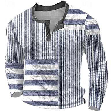 Homens Gráfico Geométrica Bloco de cor Camisa Waffle Henley Estilo casual Manga Longa Moda Designer Básico Diário Ao ar livre Primavera & Outono Azul Vermelho Verde Cinzento Henley Camiseta Henley