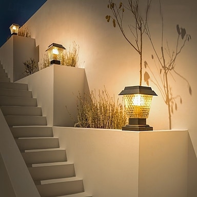 Luzes de poste solor para áreas externas LED, luzes de coluna para áreas externas em estilo nórdico, luzes de poste de cerca à prova d'água IP54 para deck, adequadas para portas, pilares de pedra,