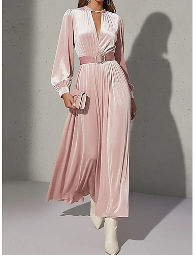 Mulheres Vestido midi Vestido de veludo Vestido antigo Vestido de festa Vestido Coquetel Elegante Moda Moderno Festa de Noite Festa Ocasião Especial Normal Tecido Manga Longa Decote V Rosa Verão
