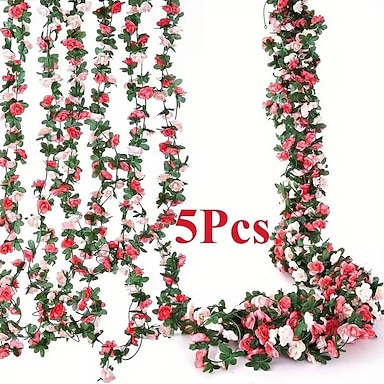 Conjunto de 5 guirlandas artificiais de peônias com flores desabrochando, guirlanda de peônias artificiais realista, sem necessidade de vaso, decoração floral de plástico para Natal, casamento e