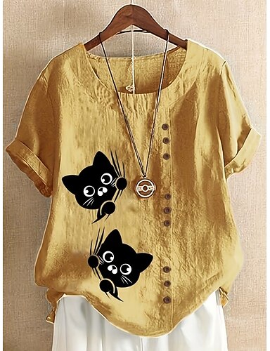 Mulheres Blusa Botões Imprimir Gráfico Animal Vintage Tropical à moda Sem Manga Manga Curta Tops longos Feriado Amarelo Azul Marinha Verão Primavera Outono