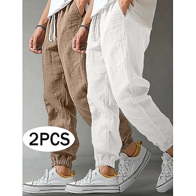 Homens Calças de linho Calças Calça verão Calças largas Calças de praia Com Cordão Cintura elástica Perna reta Tecido Conforto Respirável Comprimento total Casual Diário Ao ar livre Férias Moda