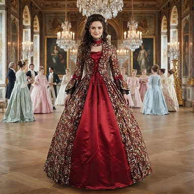 Vestido Coquetel Vestido antigo Tamanhos Grandes Fantasia Real Carnaval de Veneza