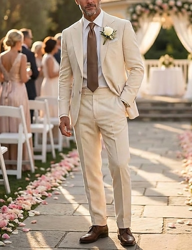 Masculino Smoking ternos de linho casamento na praia Casamento na primavera Branco Rosa Primavera Verão Terno Lapela Chanfrada Moda Festa Cor Sólida Fino Conjunto de 2 peças Comum 2 Botões