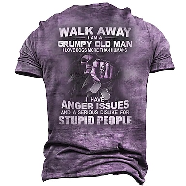 Camiseta masculina vintage de velho rabugento: "Vá embora, eu sou um velho rabugento. Amo cachorros mais do que humanos. Tenho problemas de raiva." Estampa de esqueleto nas costas. Presente ideal para o Dia dos Pais. Tamanhos: P, M, G, GG, XGG, XXGG.