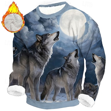 Homens Lobo Impressão 3D Tosão Moletom Diário Casual Fantasia. Gola Redonda Casa Festa Presente Streetwear Azul 1 Azul 3# Azul 2# Impressão 3D Outono Inverno Designer S M L XL XXL XXXL